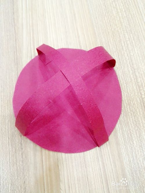 先贴一条在圆形的正中间。接着贴第二条,一直贴完四条。