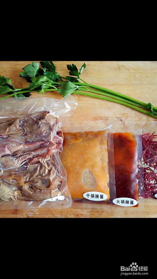 里面有熟的鸭头一袋,干锅辣酱1袋,干辣椒丝和白芝麻一袋,非常齐全,下锅翻炒两下就能上桌,快手美味