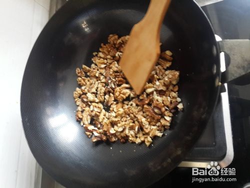 2、分别将核桃和黑芝麻提前放入锅文火炒香。