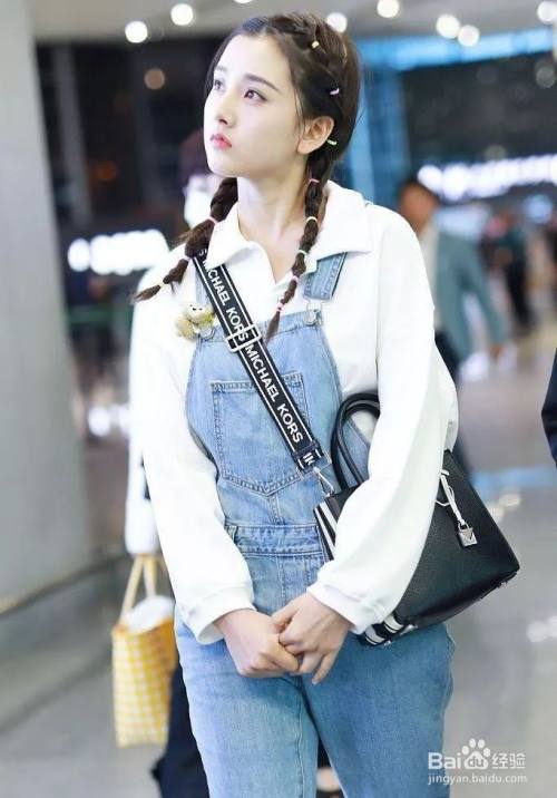 牛仔背带裤搭配白色衬衫双辫子发型,不但有很好的减龄效果,同时更是非常的个性,在一定程度上有着很好的吸睛效果。
