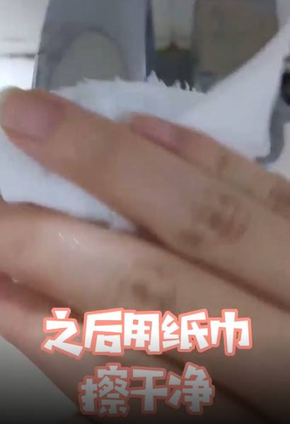 用土豆皮有肉的那一面,反复擦拭水龙头上的水渍。