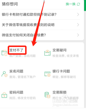 之后点击“帮助中心”选项,进入后,点击“支付不了”选项。