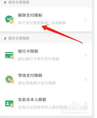 此后找到“解除支付限制”选项,点击进入。
