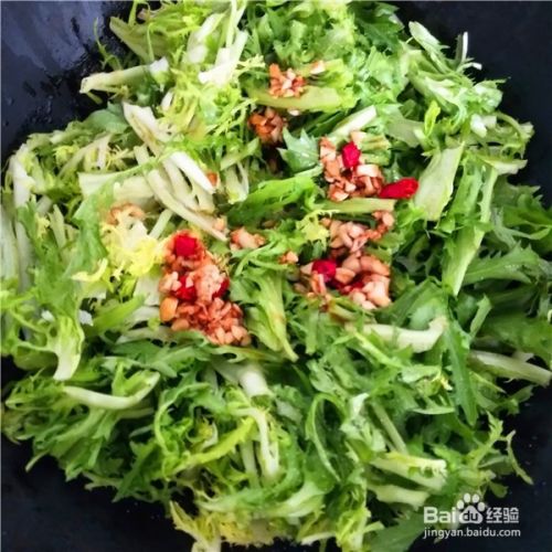 苦菊倒入锅中,加入3中准备好的调料,搅拌均匀。