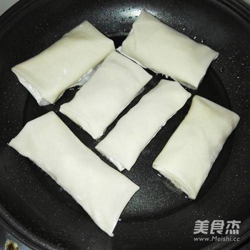 7不粘锅内加入适量油,烧至七成热,放入春卷炸。