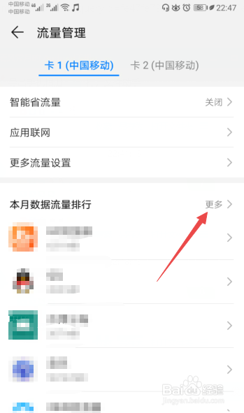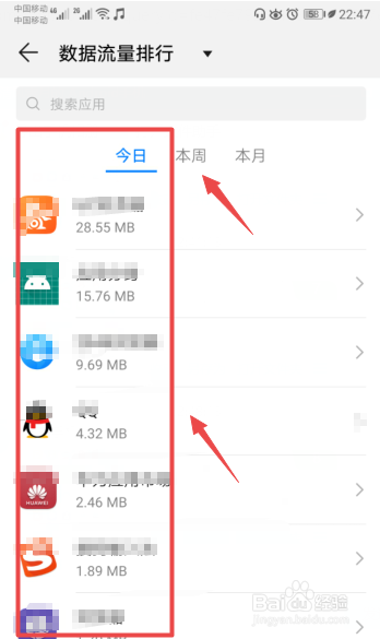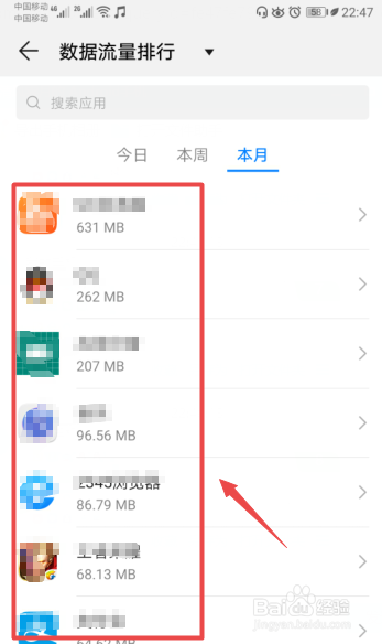 然后便可以看到本月的应用使用流量情况了。