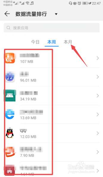 然后我们便可以看到本周应用使用流量情况,之后点击本月;