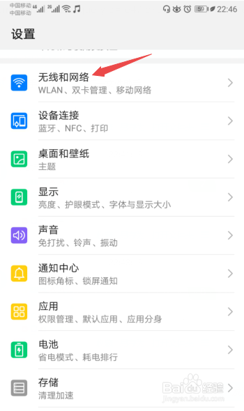 之后点击无线和网络;