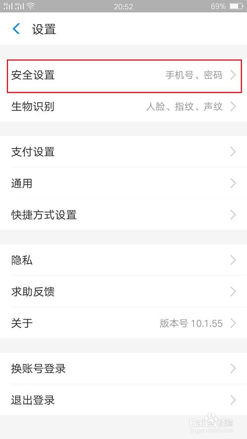 进入到设置以后,找到“安全设置”一项,点击进入。