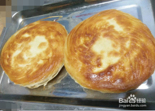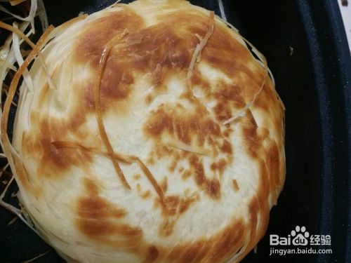 将鸡蛋和肠盛出来,再将馍坯放进去烙。