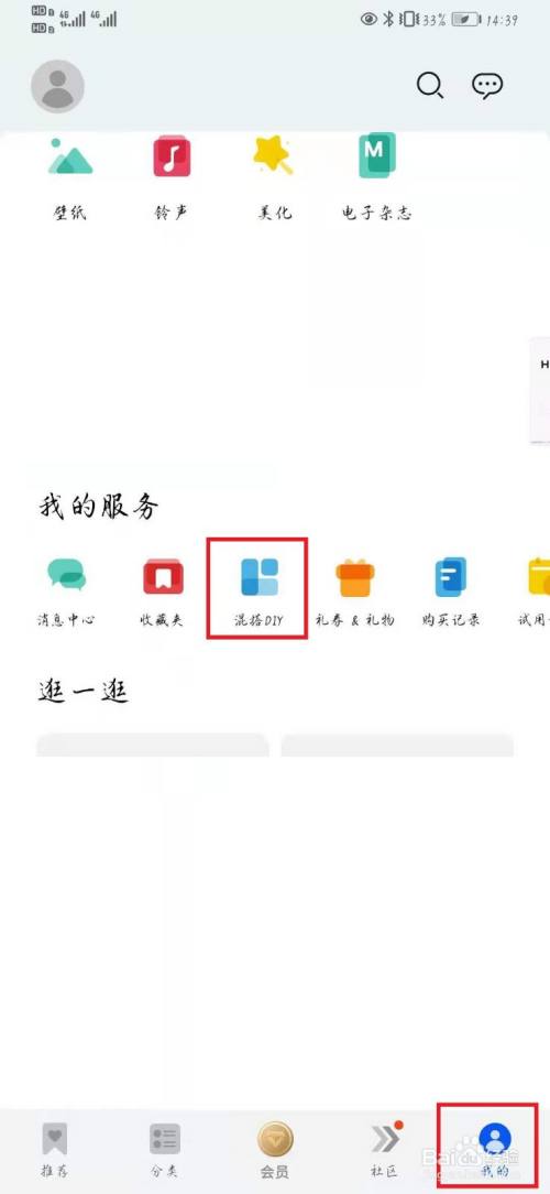 在手机主题应用,依次打开【我的】-【混搭DIY】,如下图所示。