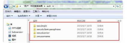 找到这个文件夹之后点击打开,然后删除这个文件夹里面的文件,然后重启eclipse,重新使用svn的时候就会重新输入账号密码了。