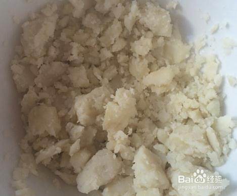 土豆泥加少许盐、胡椒粉搅拌均匀。