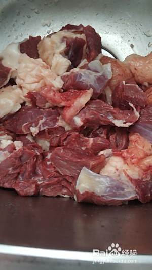 把抄水后的牛肉拿出,给牛肉洗一洗血水,给牛肉冲冲凉