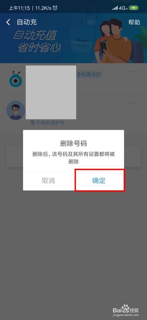 验证通过后,我们可以看到,之前设置的自动充话费的号码已经被删除。