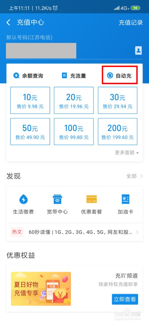 这时,我们可以看到之前设置的自动给他人充话费的选项。