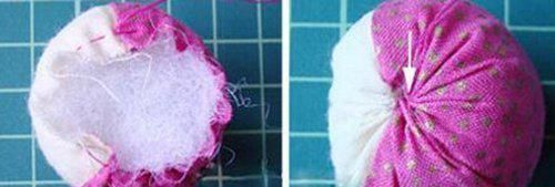 先用针把底部的开口缝成一个圈,然后开始往里面塞足够的棉花,然后拧紧线端,在拧紧的过程中,把底部的毛边塞进去,这样可爱的猫头鹰身就完成了。
