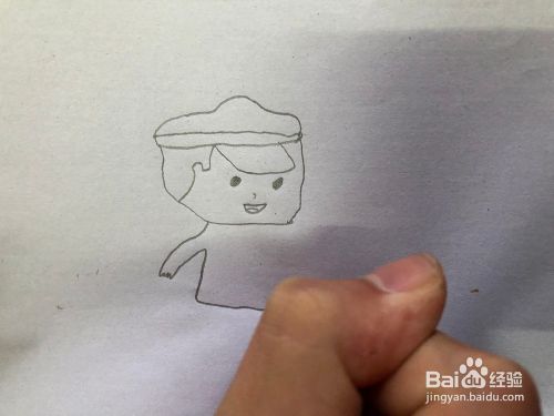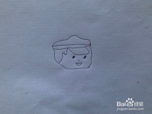 在前面画长方形,帽子就画完啦,在帽子的下面画上脸,在脸的边上画上头发。