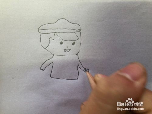 在画上胳膊和身体,在脖子下面画上W在画上一个铅笔型,在画上腿。