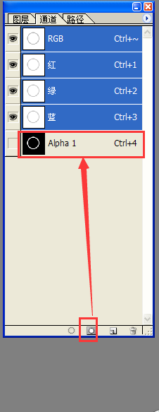 打开通道面板,点击将选区存储为通道按钮。就建立了一个通道。