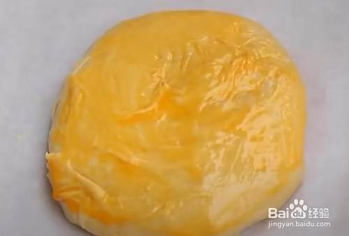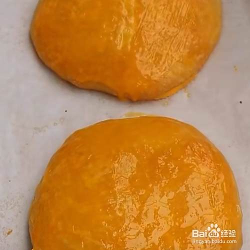 最后将包子口朝下,放在铺有油纸的烤盘上,在表面上刷上一层蛋黄液。