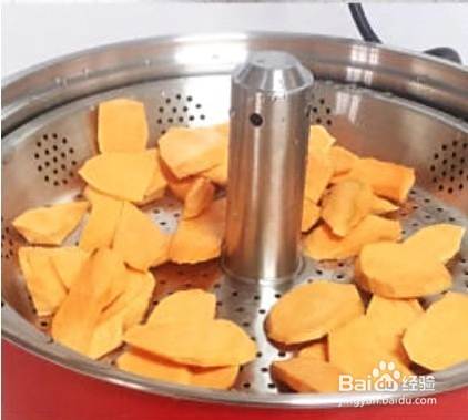 将红薯放入锅中蒸熟。