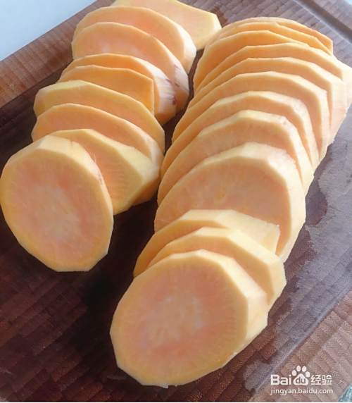 红薯洗净去皮,切成片状。