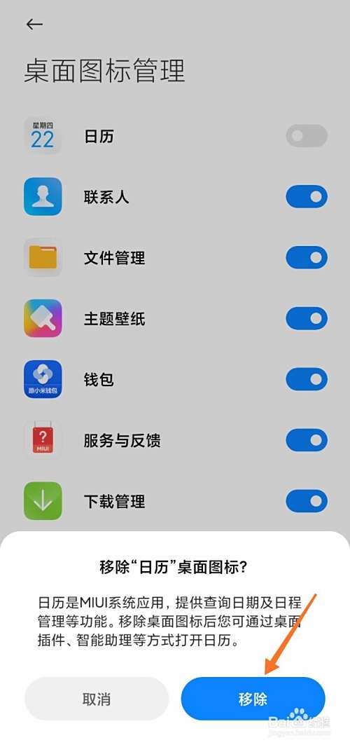 小米手机中的部分系统应用桌面图标(如:日历、音乐、联系人等)可以从桌面上取消并隐藏起来,怎么操作隐藏桌面图标呢。