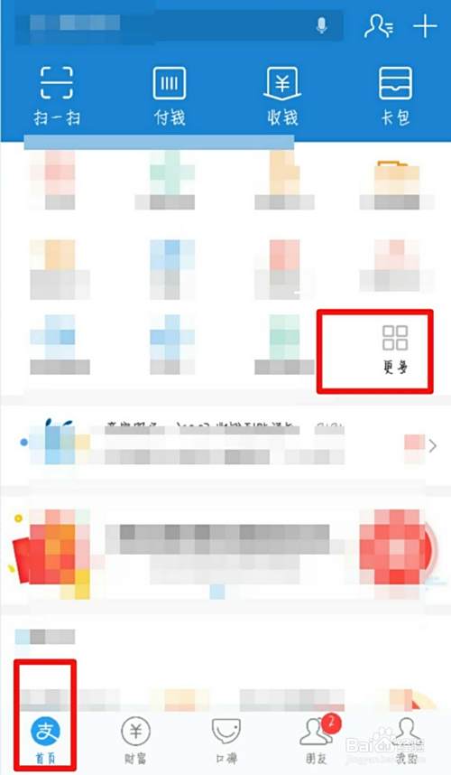 进入首页找到【亲密付】,首页没有的话就点击【更多】进入查找。
