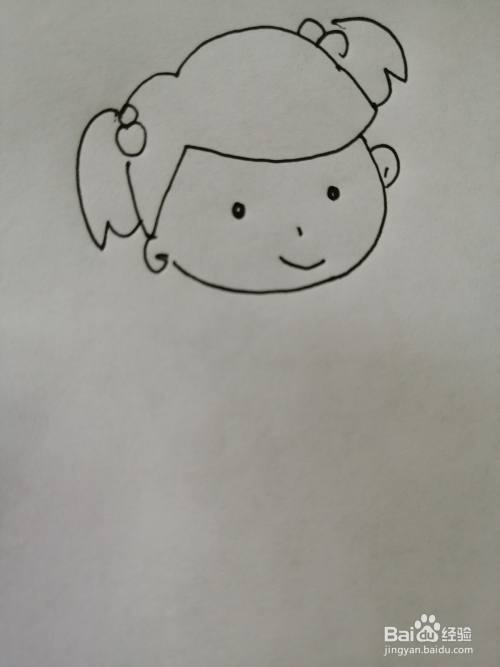 第二步,接着把可爱的小女孩的小脸和耳朵画出来,小脸画法也比较简单。