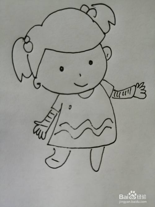 第七步,最后把可爱的小女孩的两条腿画出来。可爱的小女孩就画好了。