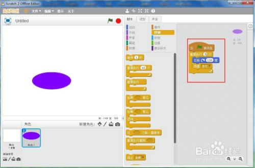 在scratch2.0中,我们可以绘制各种几何图形,今天来介绍一下怎样在scratch中绘制紫色三瓣花。