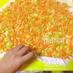 把扮好的馅均匀的铺在擀好的薄饼上