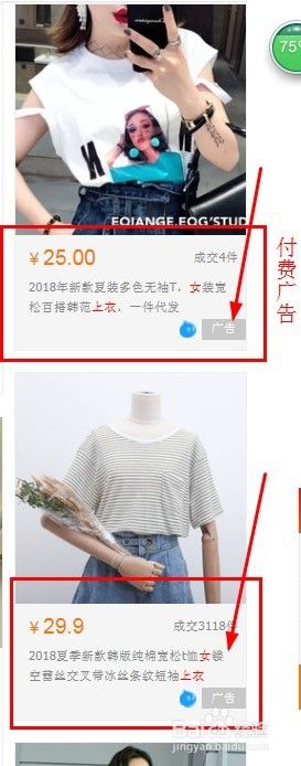 付费广告直达效果,可以在显眼的位置,直接上产品的图片或店铺图片进行直接的推广,效果是明显的,但越明显的效果费用越高,所以要合理规划付费广告的使用方式。