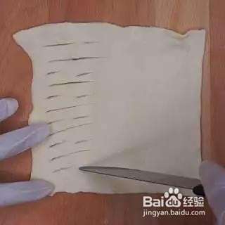 用刀在酥皮左半边划几道开口。