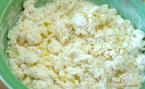 2.用筷子将面粉一分为二,一半的面粉加入开水和面。用开水和出来的面粉更加柔软哦。开水的量只要能将面粉搅拌成絮状就可以了。另一半的面粉用冷水将其搅拌成絮状。然后在两者结合在一起。揉成光滑的面团放置一旁备用就可以啦。(这种和面方法就被称为半烫面和面哦。)