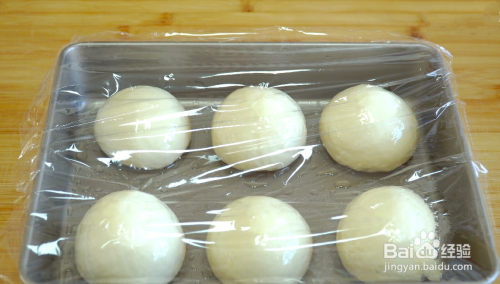 3.做油饼的时候,面团最好和得稍软一些。然后再将其分成六个大小均匀的小剂子,然后再按照揉馒头的样子,将其揉成光滑的面团。这样就能防止面团干裂了。然后在上面封上一层保鲜膜。放置一旁,醒发两小时备用。油饼要想做得好吃,醒面这一步就是关键了。