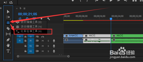 可以使用Adobe Premiere 软件中的滚动编辑工具中的比率拉伸工具,如下图所示: