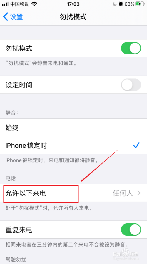 接着点击打开下方的“允许以下来电”