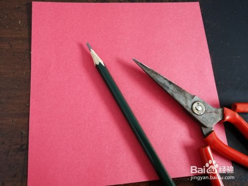 首先准备好一张正方形的彩纸,一把剪刀,一支笔备用。