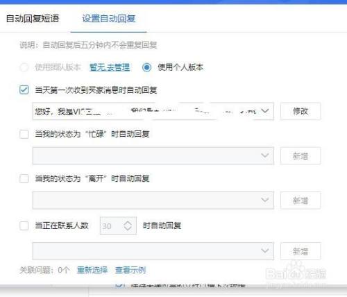 使用淘宝旺旺的时候,如果不能及时回复买家咨询,可以设置自动回复,操作方法如下: