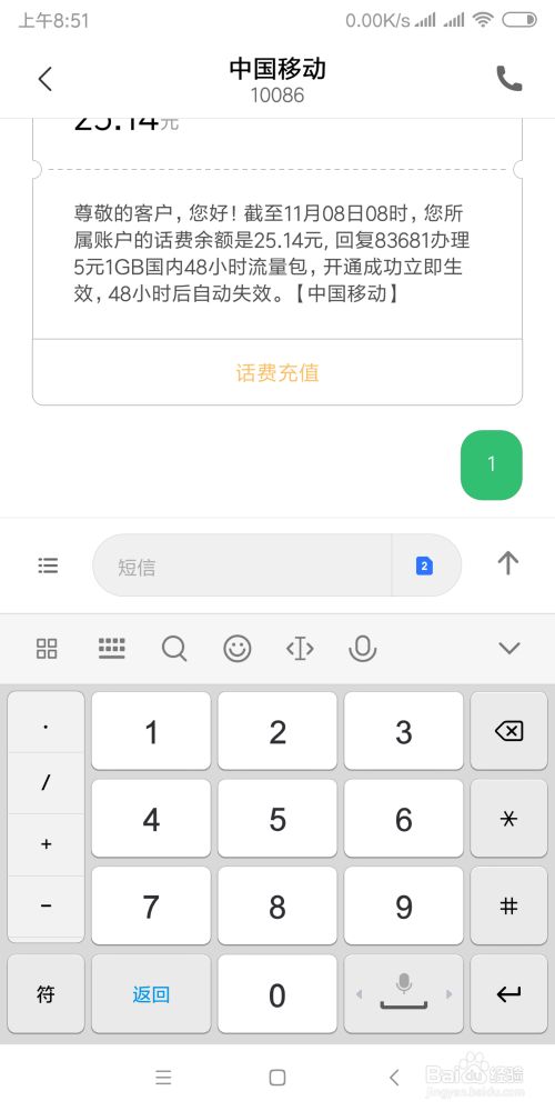 首先我们需要会发短信,这个也很简单,只要你用最基本的阿拉伯数字1就可以查询,就是发送数字1到10086就能收到话费余额了。
