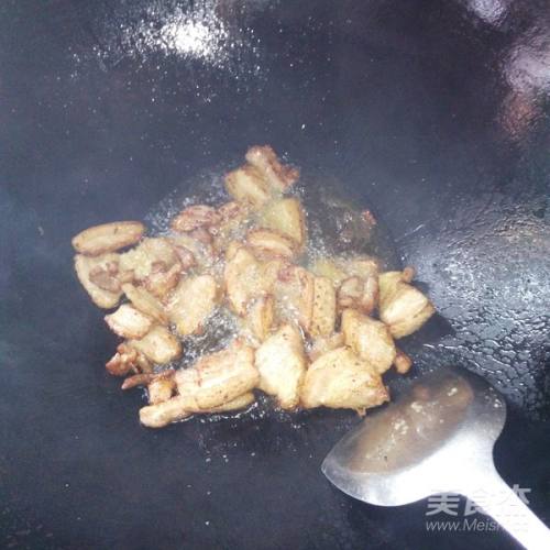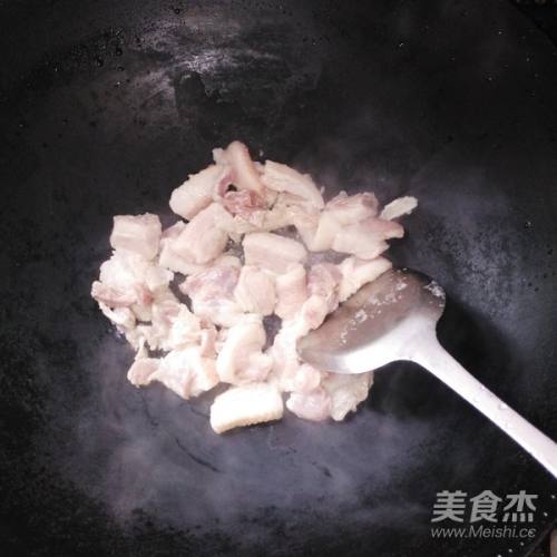 3五花肉切片洗净,放锅里炒