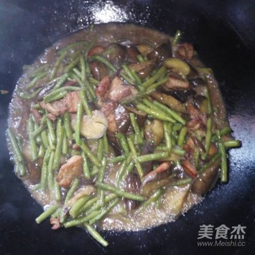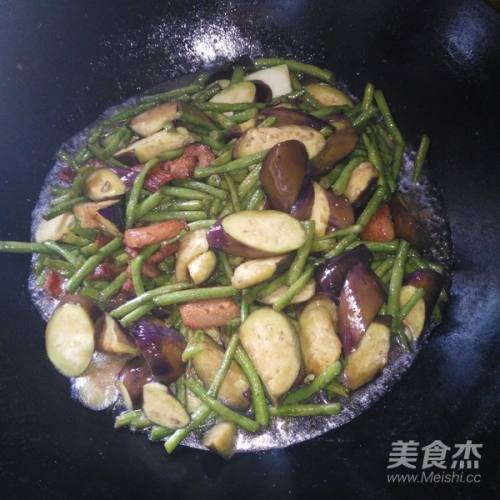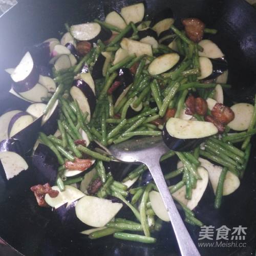 8倒入茄子(茄子比豇豆易熟,要豇豆炒至半熟再放)