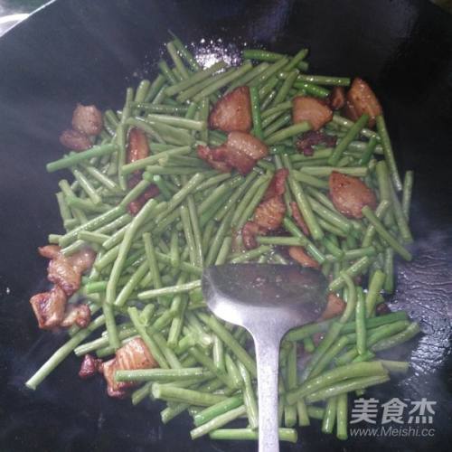 7加盐翻炒至豇豆变色变软略起焦黄斑