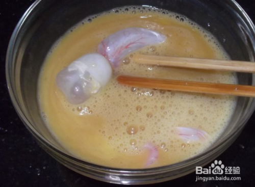 鸡蛋打散打匀,放进鱼籽、生抽,盐和白酒搅拌均匀。