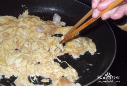 用筷子翻炒,中小火不停翻炒,将鱼籽中的水分基本炒干。