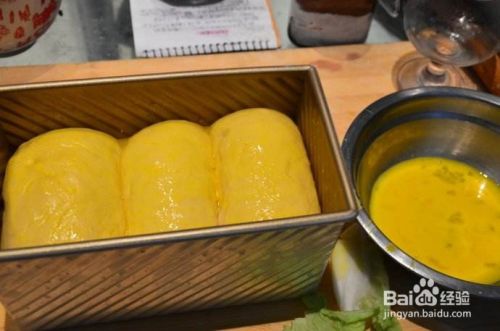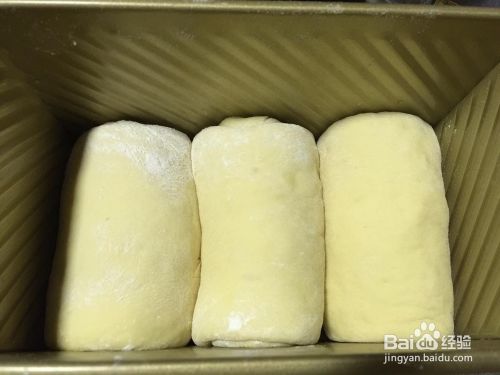 将3份面团放入土司盒中,继续发酵至8分满,手指请按表面可以轻松回弹时,表面就可以刷蛋液了。
