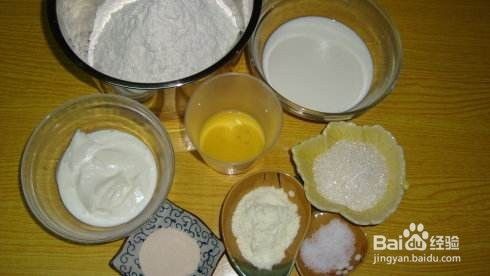 将所有的原料(黄油除外)混合,揉至能拉开厚膜。