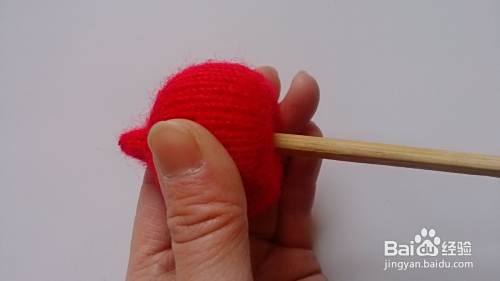 将剩下的8针用毛线穿起,填充适量棉花,并收住口。
